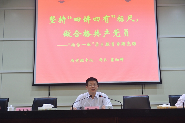 会上,局党组书记、蒋湘晖对在全局开展“两学一做”学习教育作了动员部署讲话。他要求全局党员干部,要深刻认识“两学一做”学习教育的重大意义,切实增强思想自觉和行动自觉;准确把握“两学一做”学习教育的目标任务,确保出实招、见实效;坚持“两学一做”学习教育的严实标准,确保学习教育全覆盖。