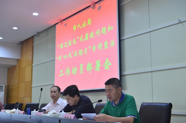 5月18日上午,市人社局召开“两学一做”学习教育动员部署大会,积极贯彻落实市委“两学一做”学习教育动员会议精神,对全局“两学一做”学习教育进行了动员部署,在全局党员干部中形成了“讲政治、讲规矩、讲道德、讲奉献”的良好氛围。市人大常委会副主任、芦淞区区委书记冯建湘出席会议并讲话。“两学一做”学习教育督导一组组长、市委组织部干部二科科长李易常参加会议。