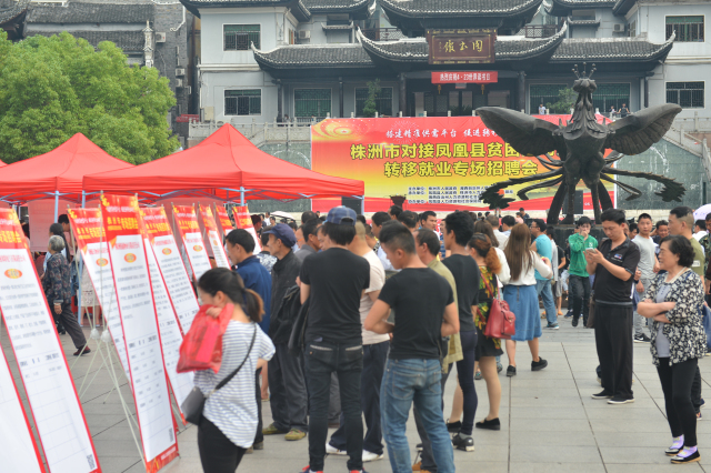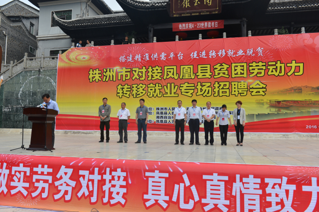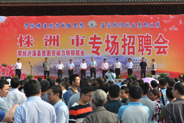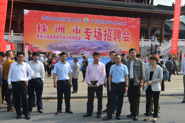 5月5日至6日,由株洲市人民政府副市长毛朝晖带队,市人社局牵头组织了23家企业先后来到湘西自治州泸溪县和凤凰县举行贫困劳动力转移专场招聘会,提供涵盖建筑、建材、餐饮服务、房地产、加工等行业共200多个就业岗位。活动现场还设置了服务咨询区,免费为求职者提供职业介绍、职业培训、创业扶持、劳动维权等相关信息的咨询服务。
