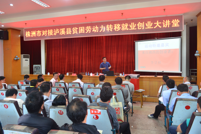 株洲市对接泸溪县贫困劳动力转移就业创业大讲堂现场