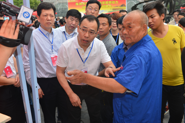 株洲市人民政府副市长毛朝晖在招聘会现场了解群众的求职需求