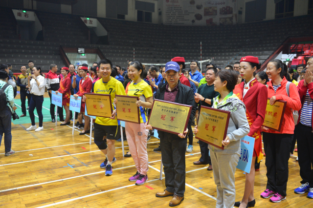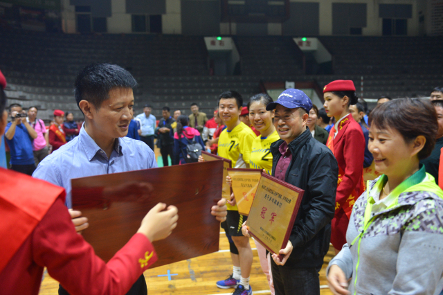 市人社局党组书记、局长蒋湘晖为获得气排球冠军、乒乓球一等奖的代表队颁奖,他表示本次比赛的举行,不仅加强了人社系统单位之间的交流,增进了干部之间的感情,更重要的是凝聚了人心、振奋了精神、激发了斗志。