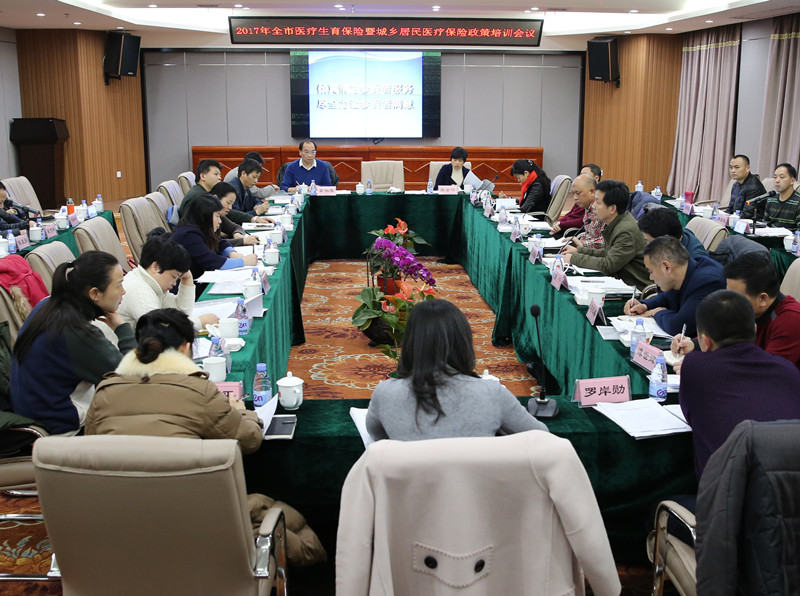 为推动2017年全市医疗生育保险工作,完善城乡居民医疗保险政策,2月23日,市人社局医保处召开全市医疗生育保险暨城乡居民医疗保险政策培训会议。市人社局分管领导、医保处处领导和科室负责人以及县市区医疗保险经办机构负责人和商业保险公司代表共80余人参加了培训会议。