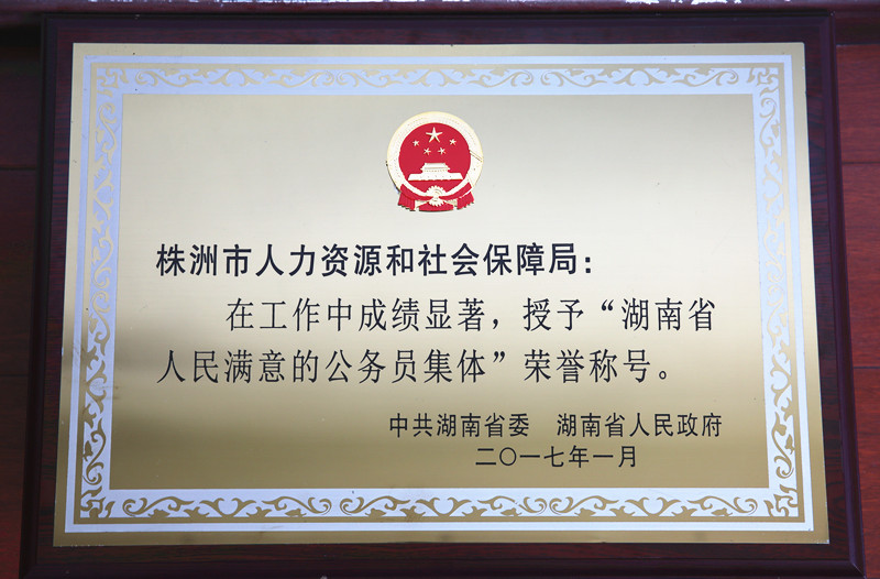 株洲市人社局获评第六届湖南省“人民满意的公务员集体”荣誉称号