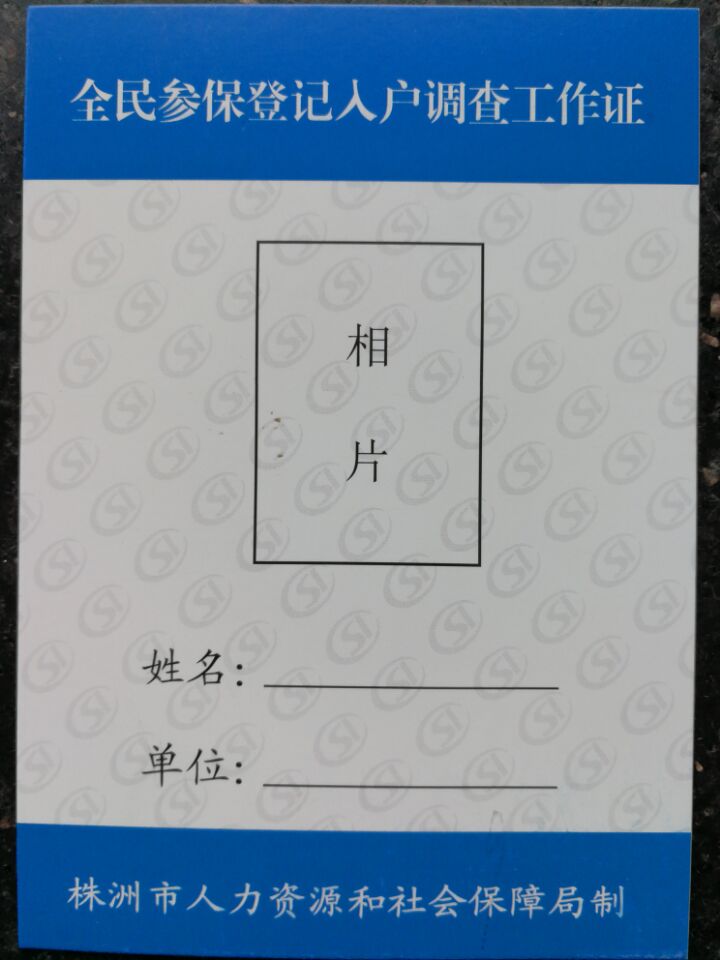 (调查员统一佩戴《全民参保登记入户调查工作证》,有照片、姓名、单位等信息,并加盖单位公章)