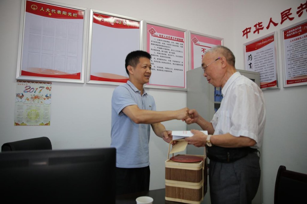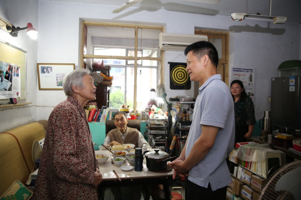 (蒋湘晖上门慰问一次性向党组织交纳10万元党费的老党员陈静霞夫妇)