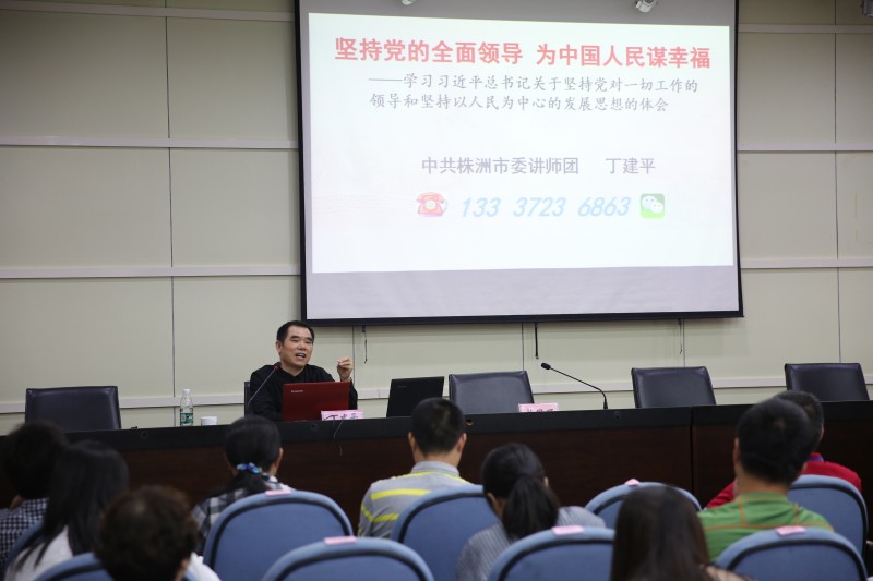 接下来进行的是党委中心组(扩大)学习暨红色讲堂授课活动。市委讲师团丁建平教授以《坚持党的全面领导,为中国人民谋幸福》为题进行了专题教学。丁建平教授从坚持党对一切工作的领导和坚持以人民为中心的发展思想两个方面,分享阐述了学习习近平新时代中国特色社会主义思想的体会。在家局党组成员、局机关和局属各单位干部职工130余人参加学习。