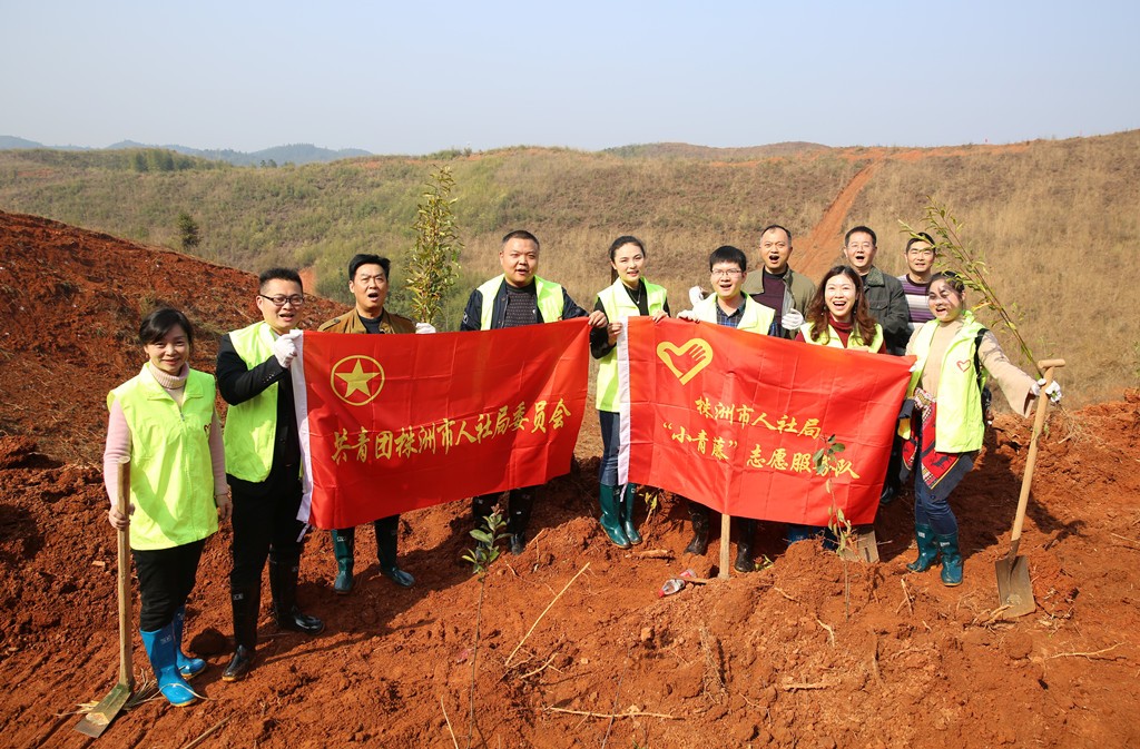 3月11日上午,在第40个植树节来临之际,株洲市人社局、株洲市医保局组织机关各科室、直属二级机构60余名干部职工以及人社局“小青藤”志愿者,赴天元区雷打石镇霞石村开展义务植树活动。在植树现场,大家干劲十足,分工协作,携手种下300多棵树苗,给乡村的山野添了一抹新绿。市委组织部副部长、市人社局党组书记、局长蒋湘晖,市医疗保障局党组副书记、副局长陈志鸿,市人社局党组成员、副局长田智思等参加植树活动。