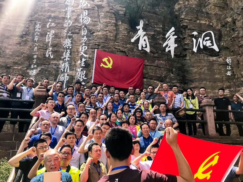 培训期间,学员们沿着红旗渠干渠实地行走,感受这一工程的险峻,对党带领林州人民凿开太行铁壁,架设“人工天河”的艰苦奋斗有了直观的感受。来到红旗渠咽喉工程青年洞处,学员们在退休老同志刘桂秋的带领下,慷慨激昂地重温了入党誓词,在场参观游客深受感染。