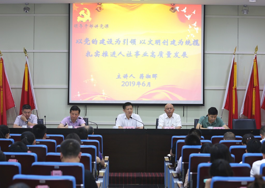 会上,市委组织部副部长,市人社局党组书记、局长蒋湘晖作了讲话,并为大家上了一堂题为《以党的建设为引领,以文明创建为统揽,扎实推进人社事业高质量发展》的党课。