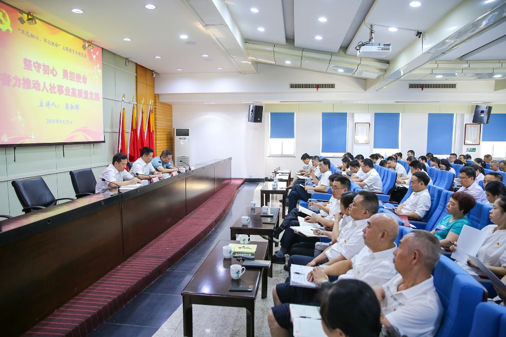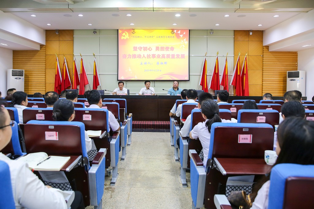 9月29日,市委组织部副部长、市人社局党组书记、局长蒋湘晖结合近段时间的学习思考和调查研究,带头为局党员干部上了一堂题为《坚守初心 勇担使命 奋力推动人社事业高质量发展》的专题党课。市委主题教育第十四指导组组长刘曙红、指导组成员张哲到会指导。