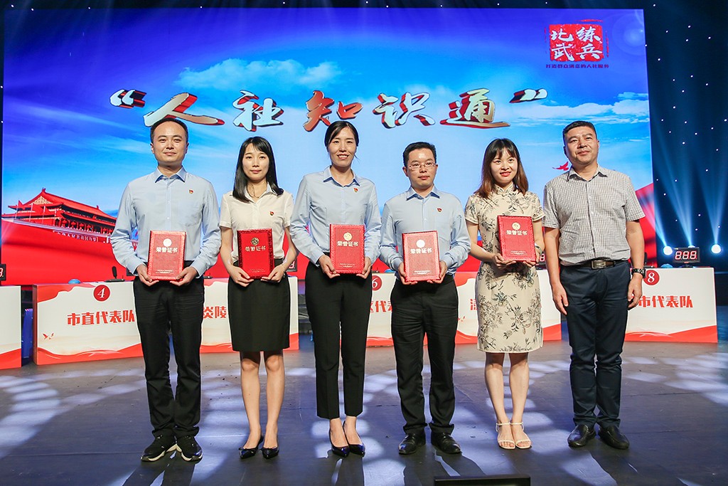 市人社局在家班子成员出席活动并为获奖代表队和个人颁奖,全市人社系统干部职工代表约150人参加活动。