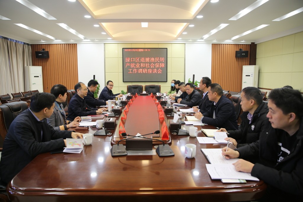 (省人社厅调研组在渌口区召开退捕渔民转产就业和社会保障工作调研座谈会)