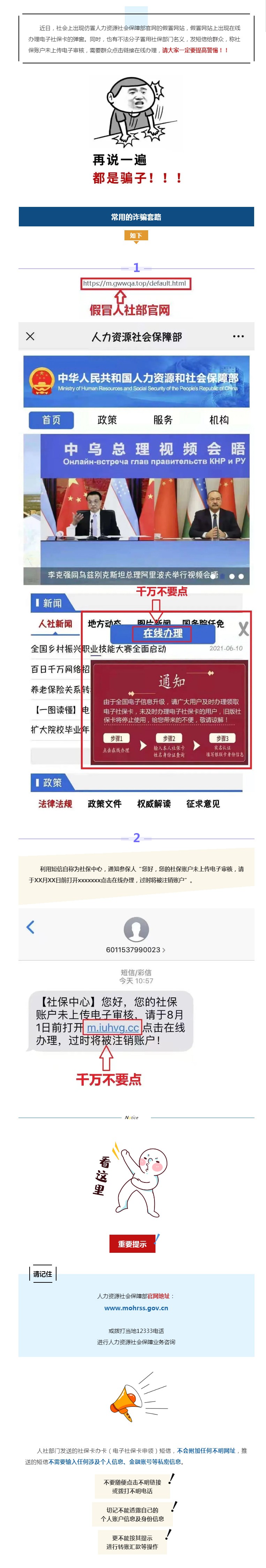 防诈警报再升级!假冒人社部网站,假冒社保卡链接,切忌上当!
