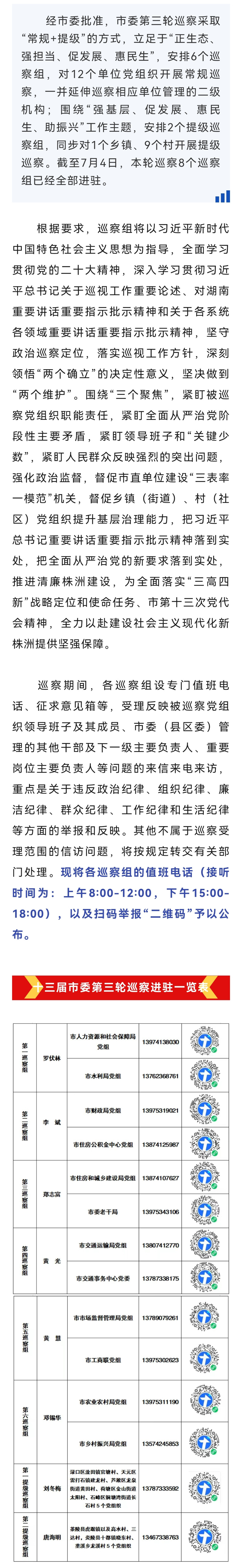 十三届市委第三轮巡察完成进驻(附联系方式)