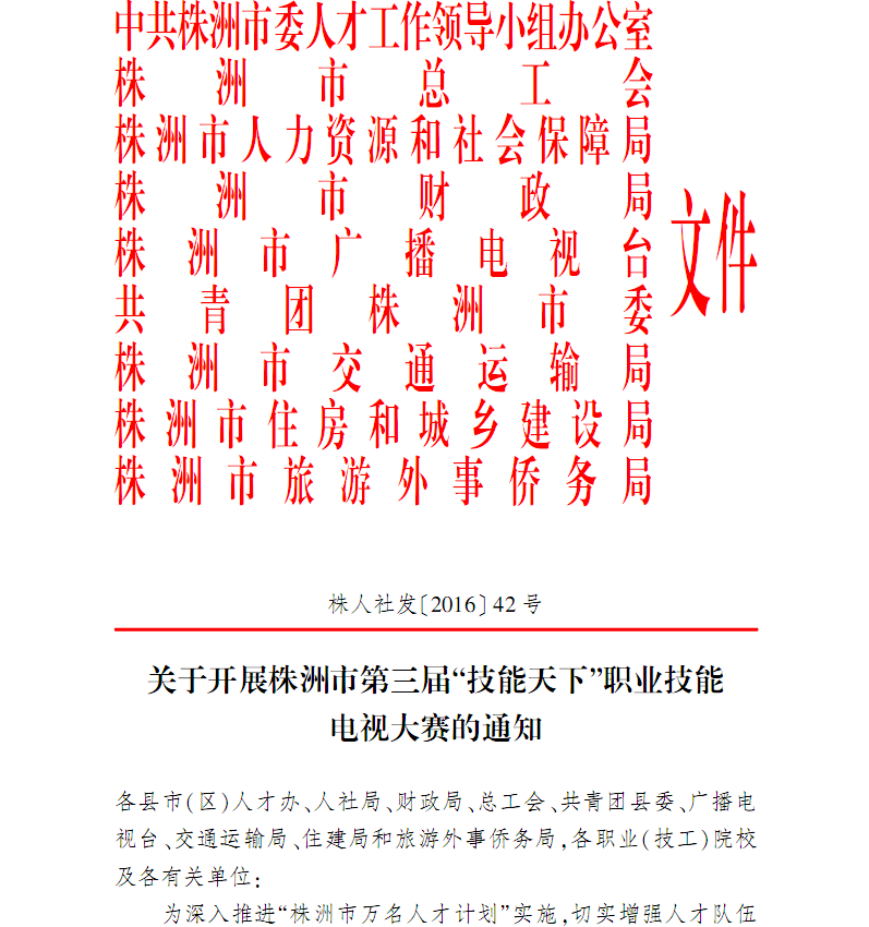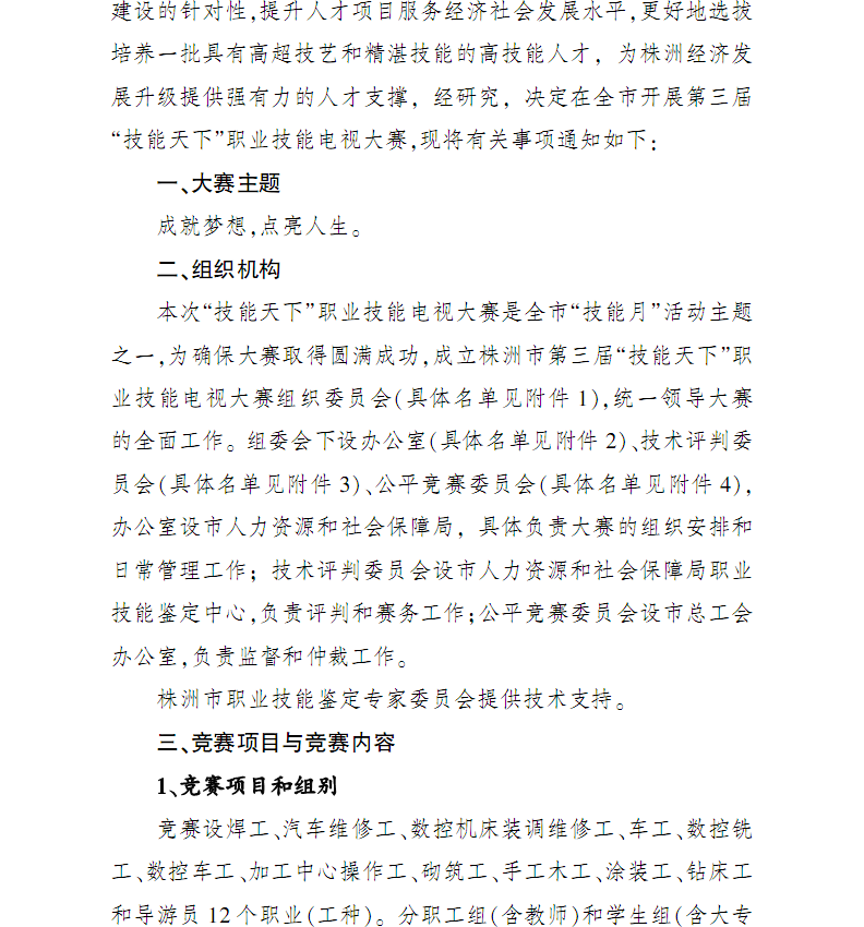 关于开展株洲市第三届“技能天下”职业技能电视大赛的通知