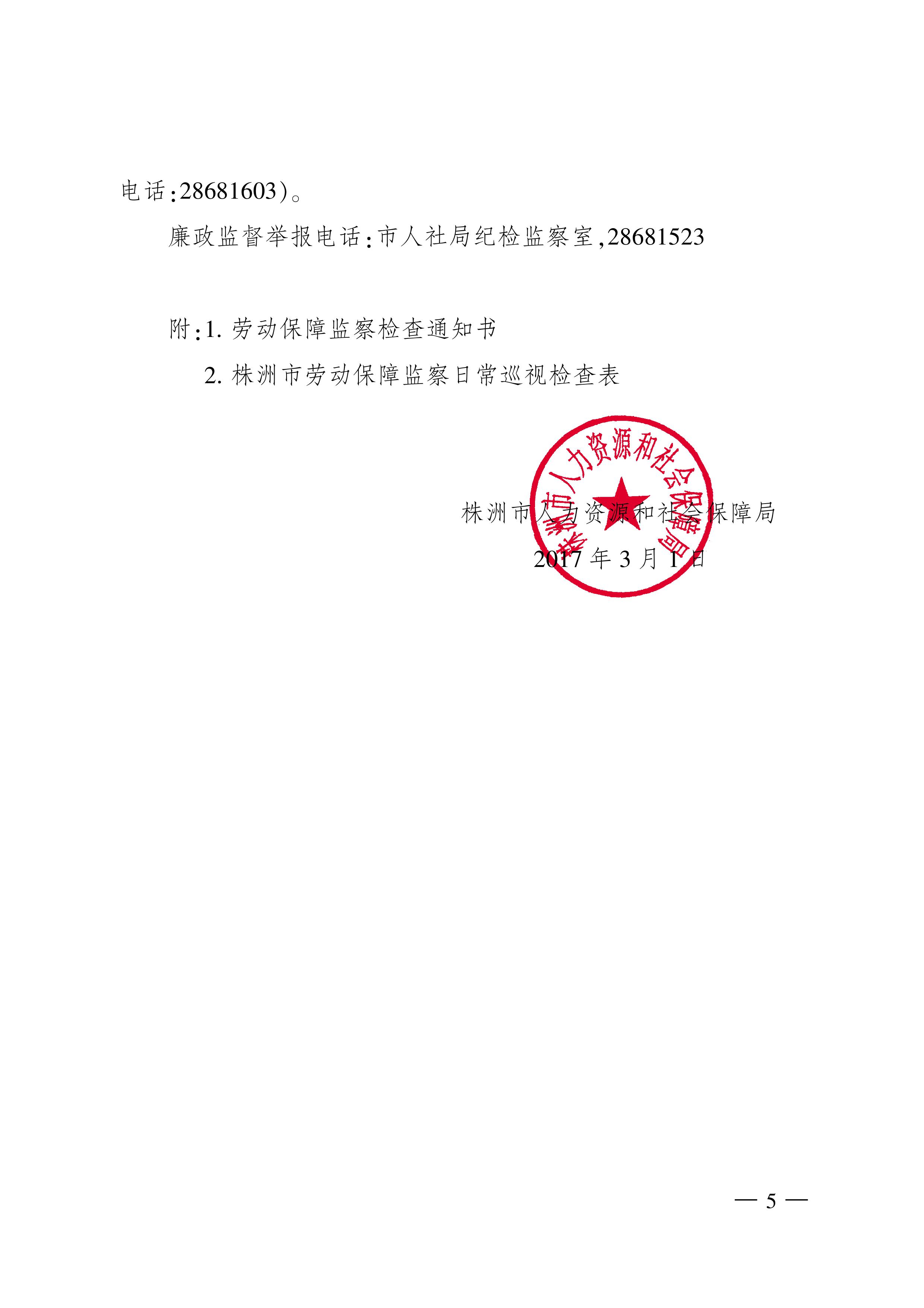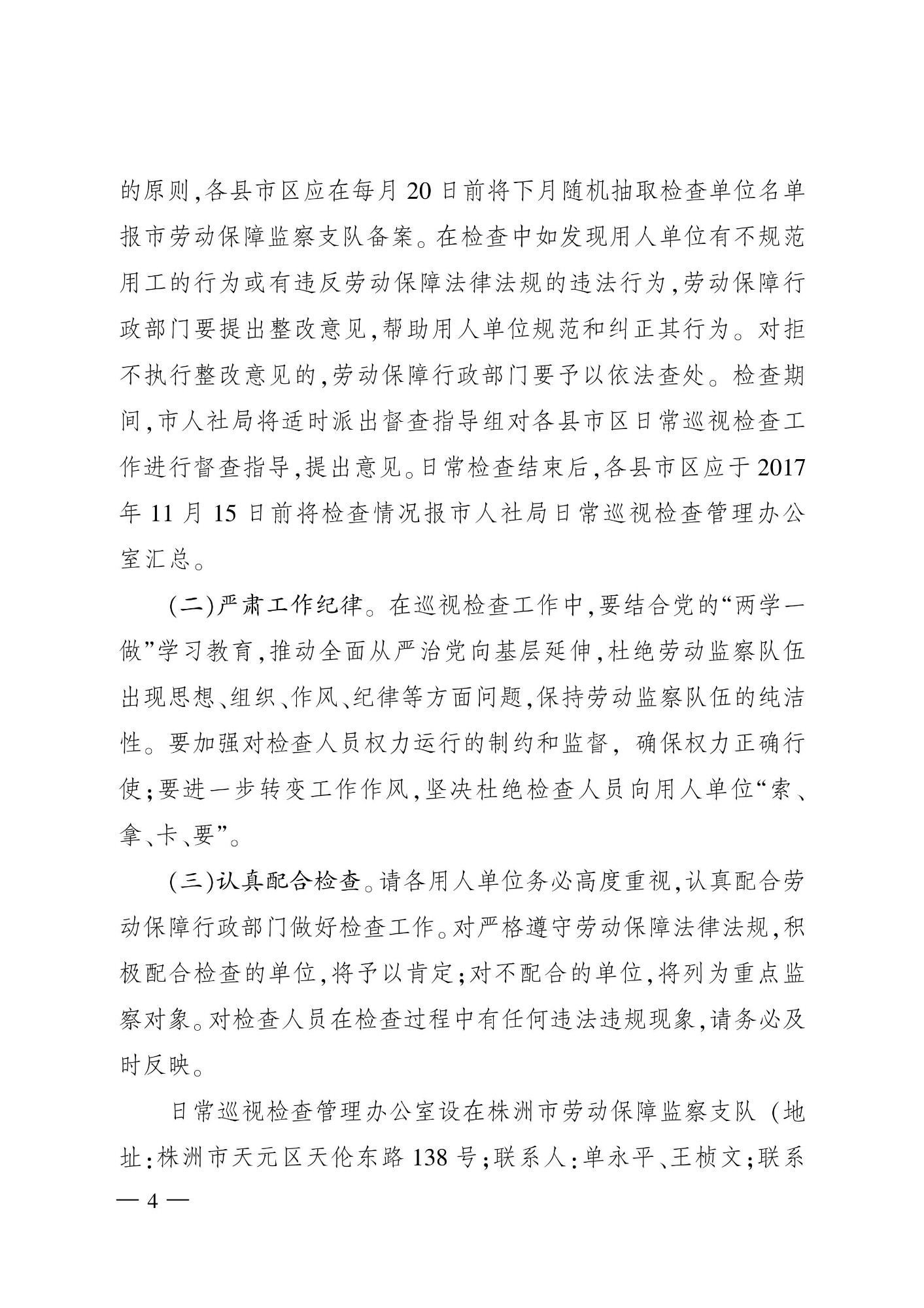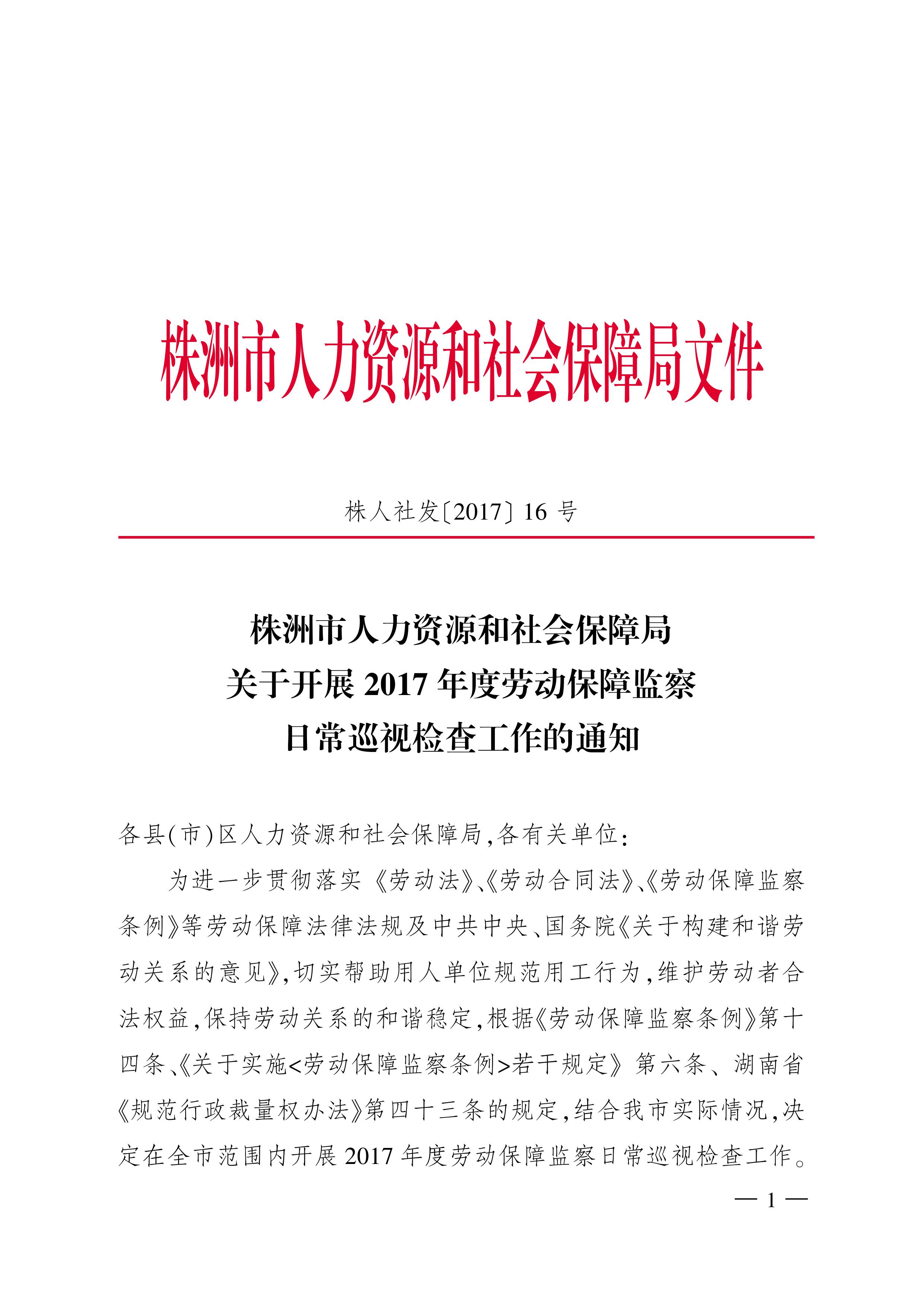 关于开展2017年度劳动保障监察日常巡视检查工作的通知