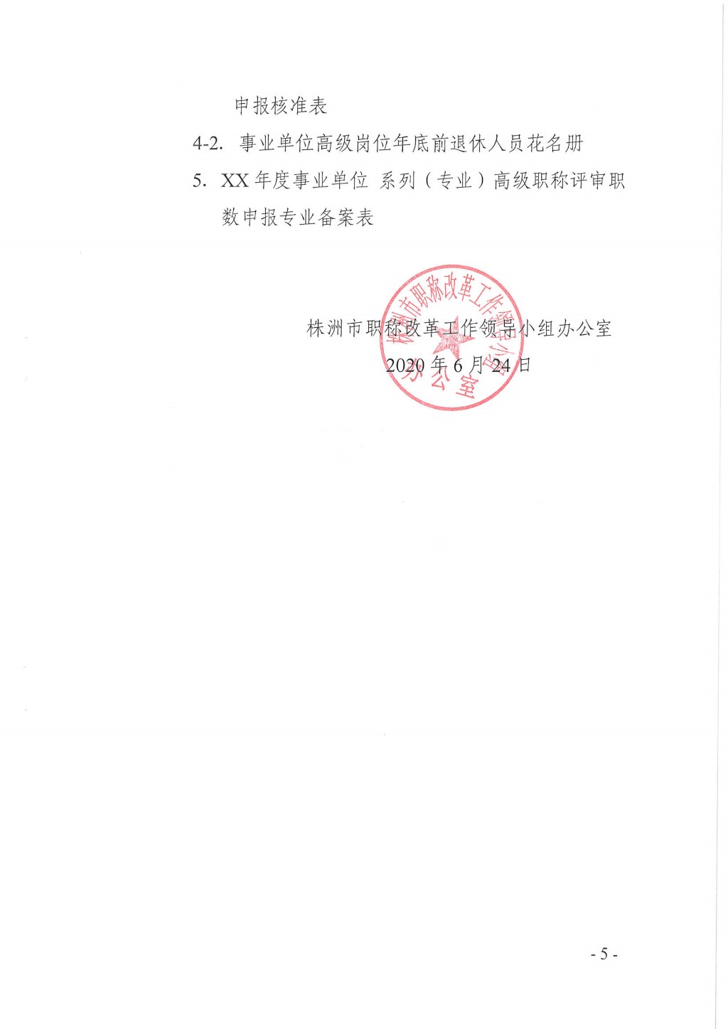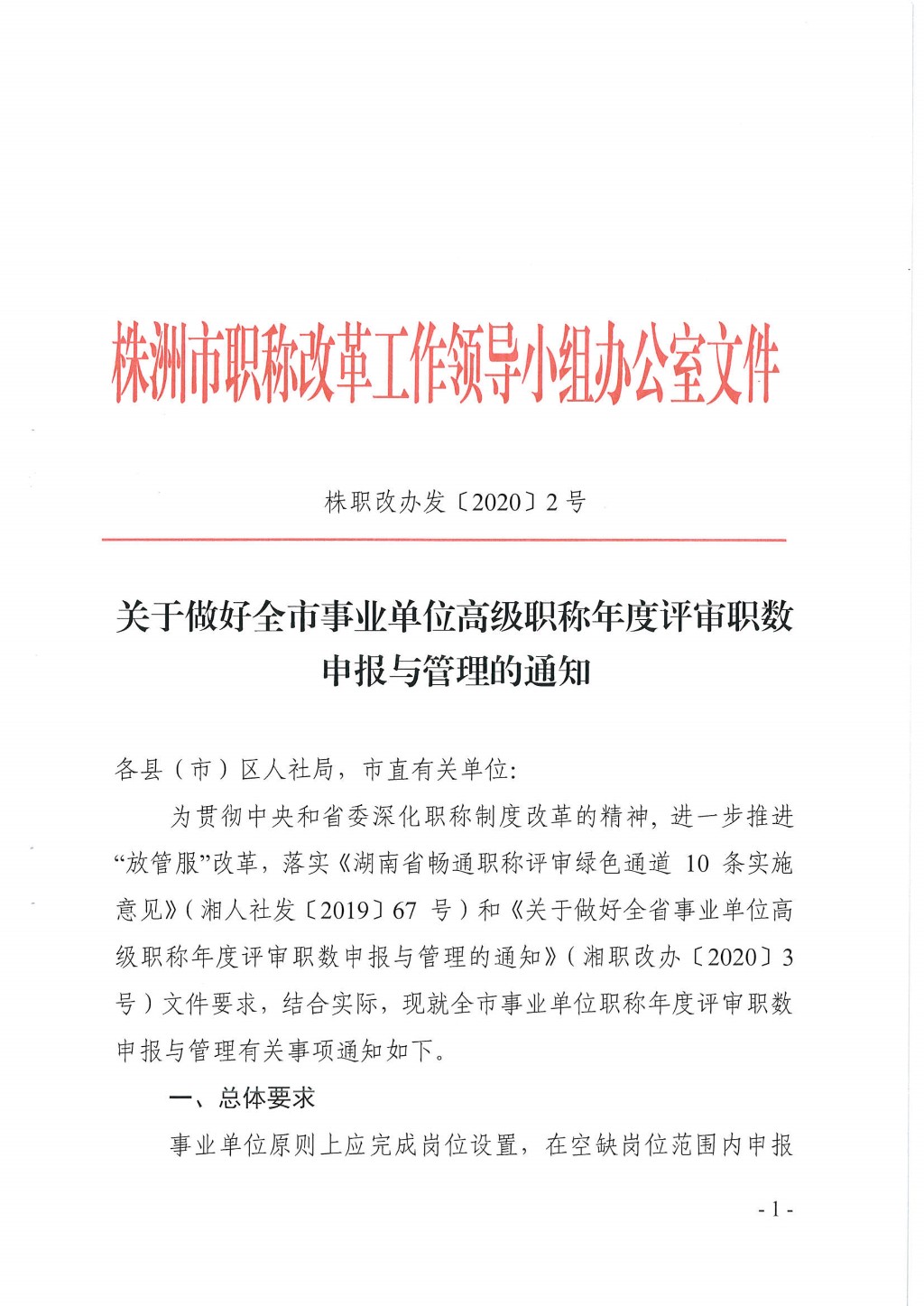 (株职改办发〔2020〕2号)关于做好全市事业单位高级职称年度评审职数申报与管理的通知(附件1-5)
