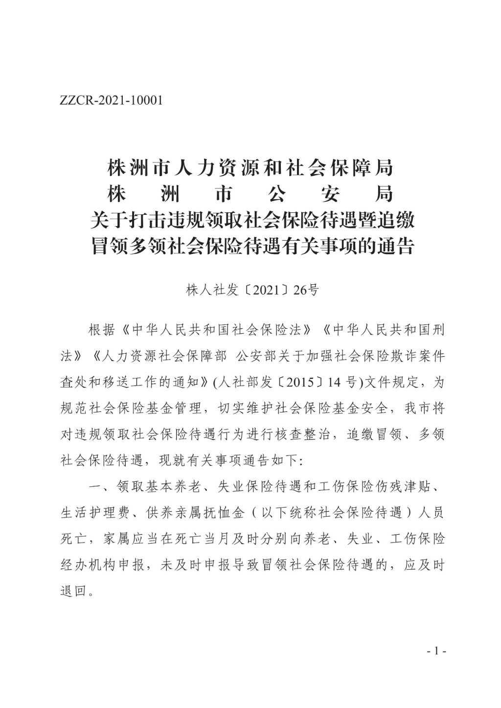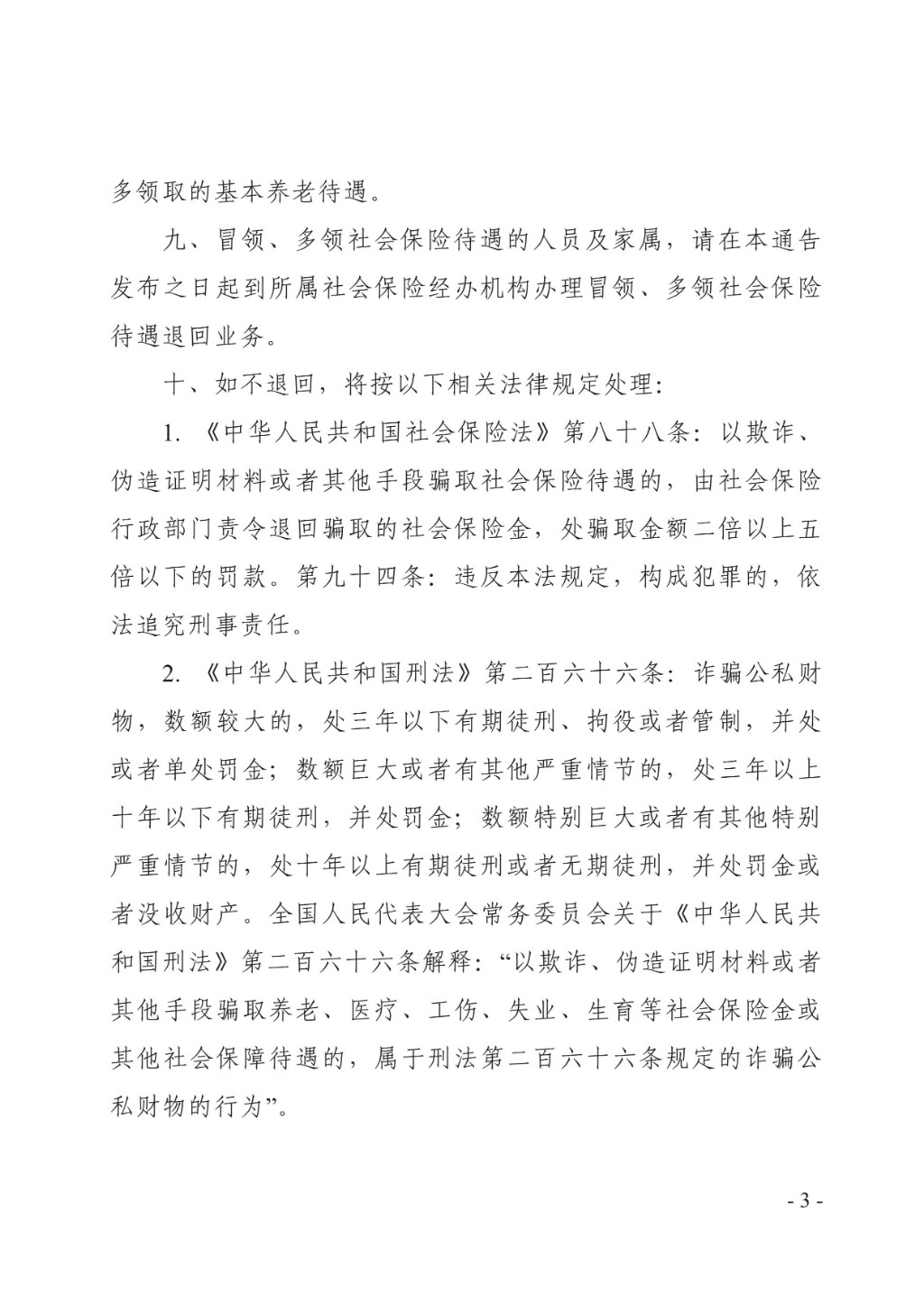 关于打击违规领取社会保险待遇暨追缴冒领多领社会保险待遇有关事项的通告