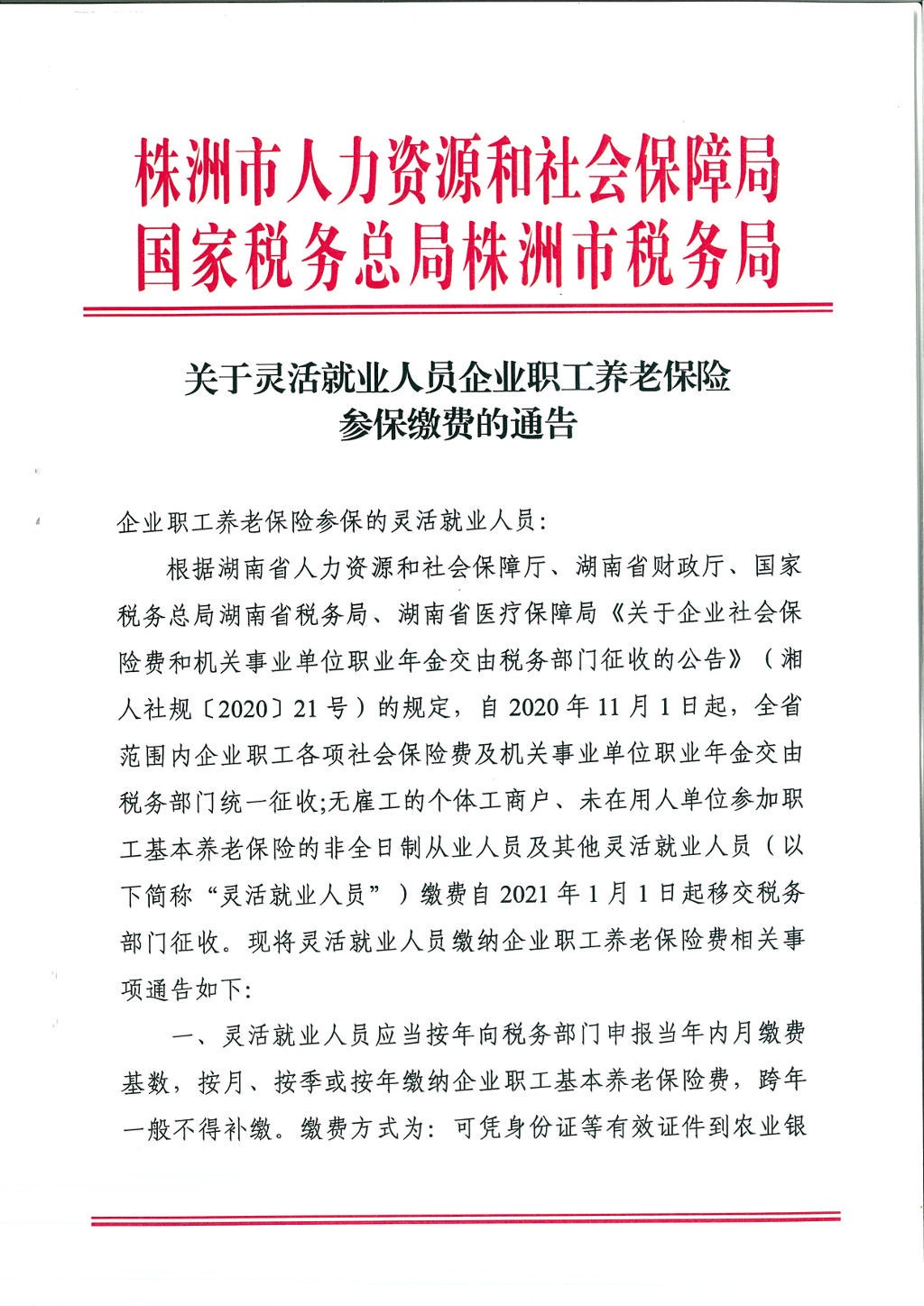 关于灵活就业人员企业职工养老保险参保缴费的通告