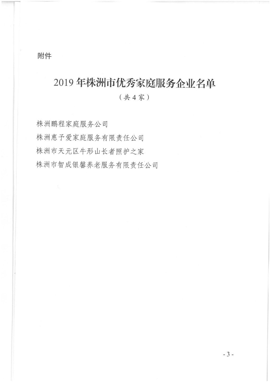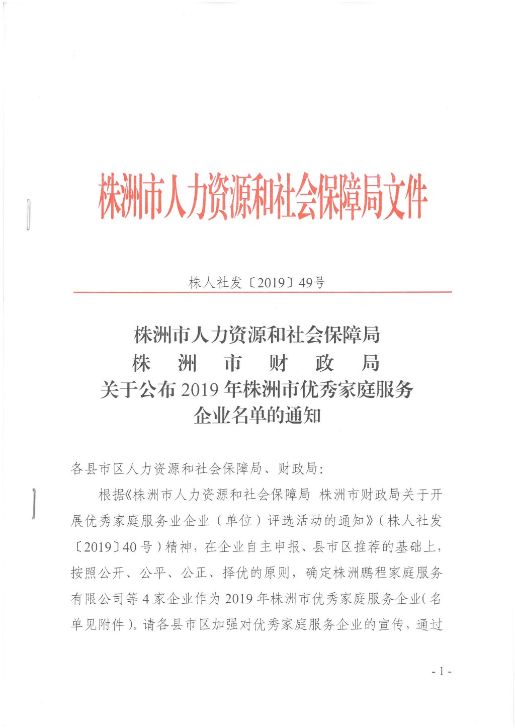 关于公布2019年株洲市优秀家庭服务企业名单的通知